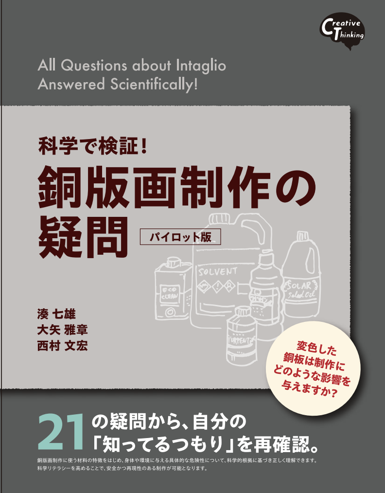 本書では、Q&A方式で銅版画制作に用いる材料の特徴のほか、身体や環境に与える具体的な危険性についても科学的な根拠を正確かつ平易に示そうと試みました。銅版画制作者らの化学的リテラシーを高めることで、安全かつ再現性を確保した制作が可能となります。技法研究における個人レベルでの成長の礎を築くことで、中長期的には銅版画芸術の質向上につながればと期待しています。