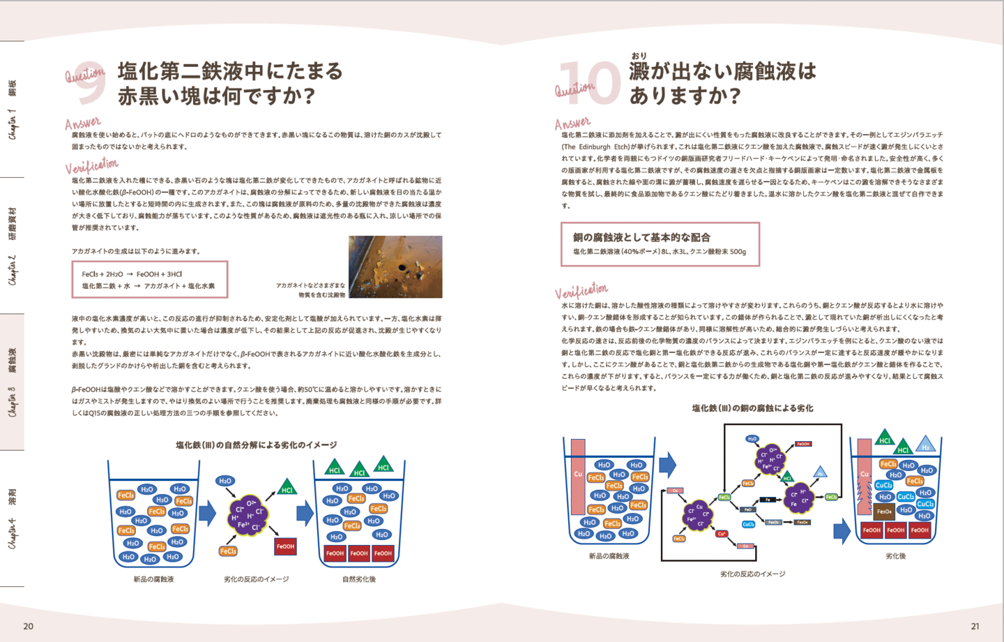 This book is co-authored by Nanao Minato, artist and professor at the University of Fukui, Dr. Fumihiro Nishimura, natural scientist and assistant professor at the University of Fukui, and Masaaki Ohya, artist and associate professor at Tama Art University. The book is unique in that it attempts to present the scientific basis for the characteristics of the materials used in copperplate engraving as well as the specific hazards to the body and the environment in an accurate and simple manner in a Q&A format. By increasing the chemical literacy of etchmakers, they will be able to work safely and reproducibly. By laying the foundation for growth in technical research on an individual level, we hope to improve the quality of the art of copperplate engraving in the medium and long term.