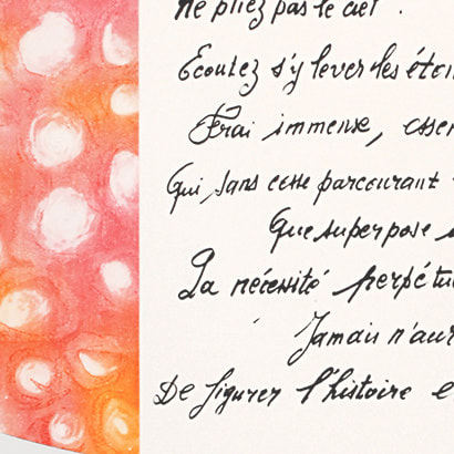 Born in 1925, died in 2011. Poet and author. He wrote many works other than his poems. His novel Pentecôte was published in 1973 by Gallimard, the publisher that has published so many works of modern French authors. He communicated with many artists during his long career and collaborated with them to create many collections of poems and pictures. In 2009 an exhibition entitled ‘Robert Marteau & Ses Amis Peintres et Graveurs’ was held at the Médiathèque, in a Parisian suburb, presenting his original collaborative books of poems and pictures created along with thirty-six artists. The latest collection of his poems, Le Temps Ordinaire was published by Champ Vallon in 2009.