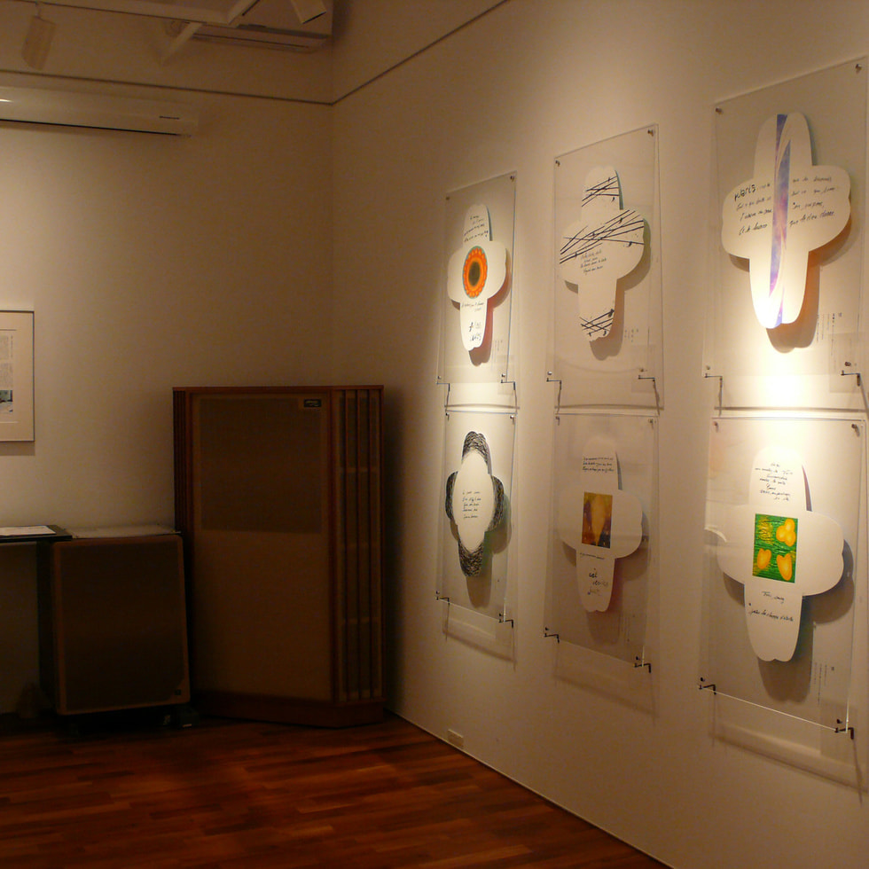 A decade later, I won a residency in Paris under the Japanese Government’s Overseas Study Program for Artists and worked in a studio there. At the time I vaguely thought of looking for the poet, aided only by that exhibition pamphlet which I had kept all that time. However, before I had even begun searching, I unexpectedly discovered that a big exhibition of his collaborative works with various international artists was going to be held at a library in Paris. It was rather boorish of me, but I took my works with me when I attended the party for the exhibition. Since I could not speak French very well, my first meeting with him ended up with me just saying ‘Enchante’ to him. He was a much older gentleman than I had expected and his eyes were so serene that he remained in my memory afterwards. It was a brief meeting but it satisfied the interest in him that I had fostered for so long.