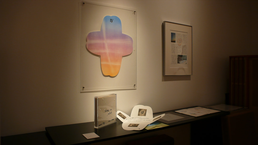 Robert encouraged me to create my works based on this main theme without any restrictions. In order to rise to such a challenge I initially made a number of watercolours and drawings using crayons. When I first made these works my intention was to develop them into copperplate prints later. However, they seemed to resonate with him far more than I had expected. This then led to us developing our initial idea of basing our collection only on print works, into an alternative one, of creating two types of collections under the same title. One was to consist of our original works, my watercolour pictures with his hand-written poems: the other, print works that were made from the original works. In both collections, the reverse side of each work commonly shows an image of the skies in Paris that I loved; these were printed using the monotype technique. This printing method can never produce the same image twice; I see the transience of the swaying skies overlapped in the images of these monotypes. The landscapes of the skies with intersecting vapour trails that were made by airplanes show very beautiful graduations. These are my ever-lasting landscape views of Paris that I look at through a window within my mind.